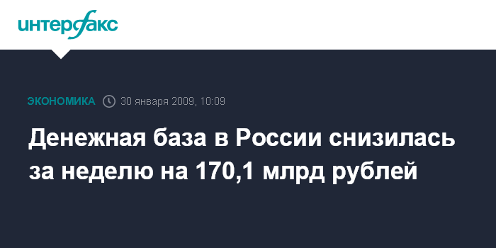 Денежная база в России снизилась за неделю на 170,1 млрд рублей