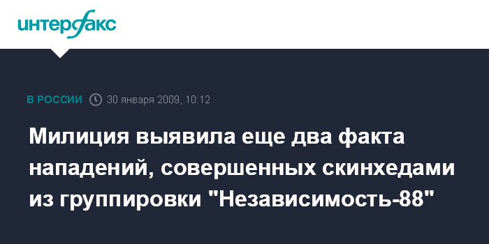Милиция выявила еще два факта нападений, совершенных скинхедами из группировки "Независимость-88"