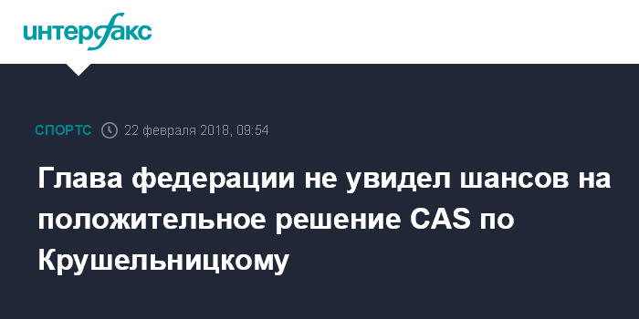 Москва. 22 февраля. INTERFAX.RU - Высокопоставленные чиновники международных спортивных федераций уверены, что керлингист Александр Крушельницкий, в пробе которого был обнаружен мельдоний, нарушил антидопинговые правила ненамеренно, однако шансов на положительное решение CAS по делу российского спортсмена все равно нет, заявил президент Федерации керлинга России Дмитрий Свищев.
