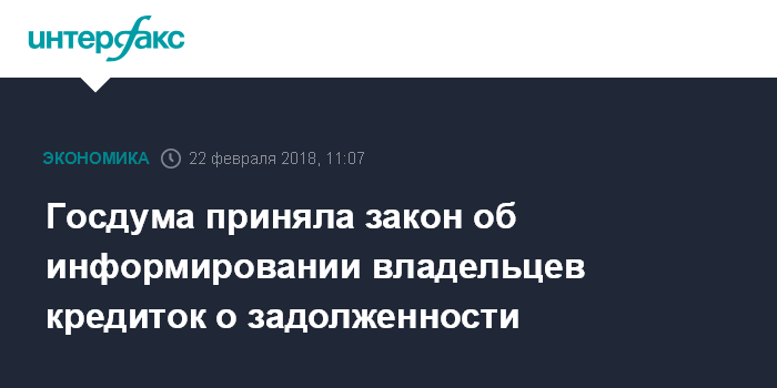 Госдума приняла закон об информировании владельцев кредиток о задолженности