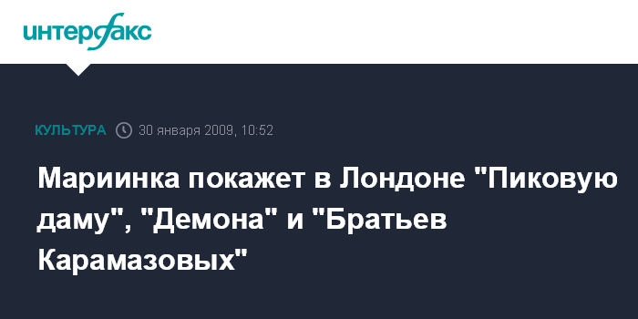 Мариинка покажет в Лондоне "Пиковую даму", "Демона" и "Братьев Карамазовых"