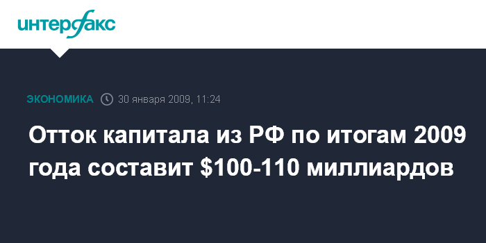Отток капитала из РФ по итогам 2009 года составит $100-110 миллиардов