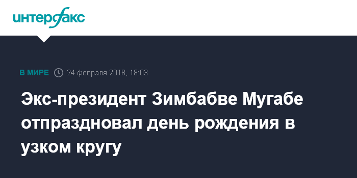 Москва. 24 февраля. INTERFAX.RU - Бывший президент Зимбабве Роберт Мугабе в субботу отметил свой 94-й день рождения, передают западные СМИ.