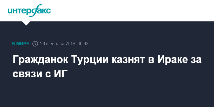 Москва. 26 февраля. INTERFAX.RU - Иракский суд приговорил как минимум 15 гражданок Турции к смертной казни через повешение за участие в террористической группировке "Исламское государство", сообщила в понедельник BBC News.