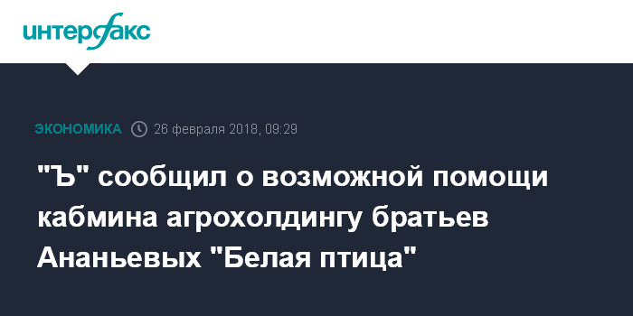"Ъ" сообщил о возможной помощи кабмина агрохолдингу братьев Ананьевых "Белая птица"
