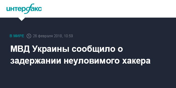 Москва. 26 февраля. INTERFAX.RU - Департамент киберполиции Национальной полиции Украины объявил о задержании хакера, которого разыскивали правоохранительные органы 30 стран мира.