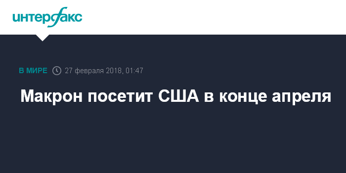 Москва. 27 февраля. INTERFAX.RU - Президент Франции Эммануэль Макрон посетит 24 апреля Вашингтон с государственным визитом, сообщила пресс-секретарь Белого дома Сара Сандерс.