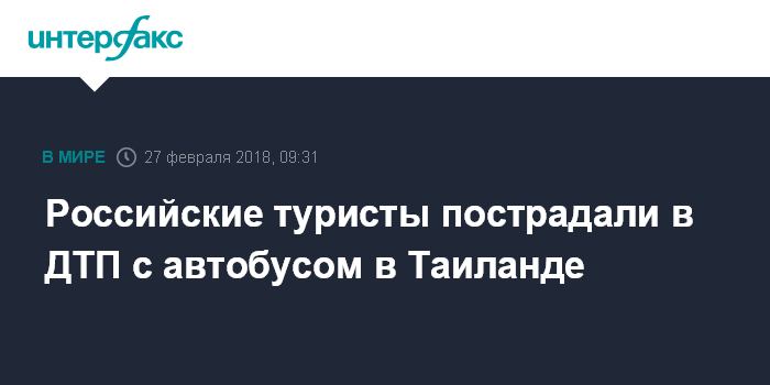 Москва. 27 февраля. INTERFAX.RU - Российские туристы пострадали в дорожной аварии с автобусом по дороге из Кату в Патонг в Таиланде, сообщает во вторник портал "Новости Пхукета".