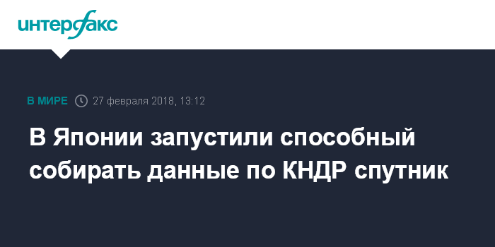 Москва. 27 февраля. INTERFAX.RU - Сотрудники Японского агентства аэрокосмических исследований (JAXA) объявили о выводе на орбиту спутника-разведчика, способного собирать данные по КНДР, сообщает во вторник агентство EFE.