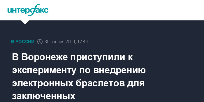 Москва. 30 января. INTERFAX.RU - В Воронеже начался эксперимент по внедрению электронных браслетов, с помощью которых можно контролировать передвижение заключенных, сообщили "Интерфаксу" в пятницу в пресс-службе Управления Федеральной службы исполнения наказаний (ФСИН) по Воронежской области.