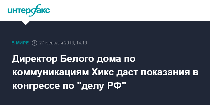 Директор Белого дома по коммуникациям Хикс даст показания в конгрессе по "делу РФ"