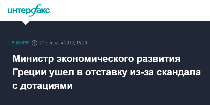 Министр экономического развития Греции ушел в отставку из-за скандала с дотациями