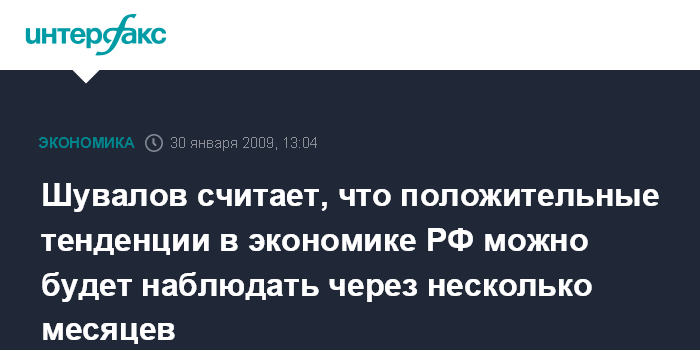 Москва. 30 января. INTERFAX.RU - Положительные тенденции в экономике РФ можно будет наблюдать через несколько месяцев, заявил в пятницу в Госдуме первый вице-премьер Игорь Шувалов.