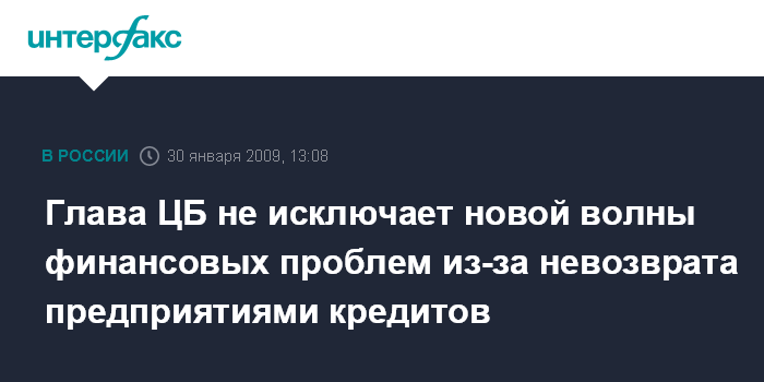 Москва. 30 января. INTERFAX.RU - Глава ЦБ РФ Сергей Игнатьев не исключает возникновения новой волны финансовых проблем из-за невозврата предприятиями кредитов банкам.