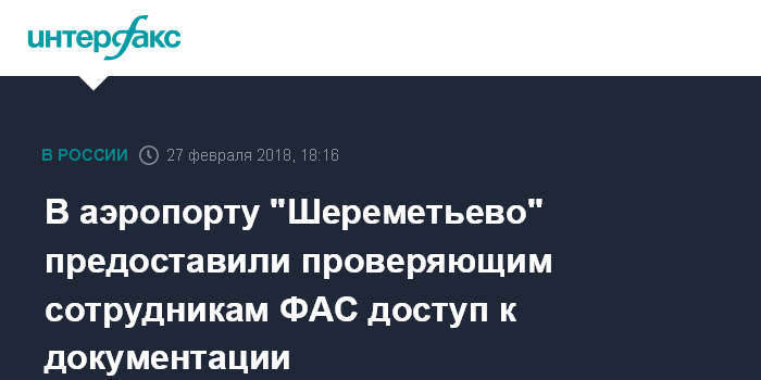 Москва. 27 февраля. INTERFAX.RU - АО "Международный аэропорт "Шереметьево" (МАШ) и "Москва Карго" предоставили сотрудникам Федеральной антимонопольной службы (ФАС) России полный доступ к документации и информационным ресурсам, сообщили "Интерфаксу" в пресс-службе "Шереметьево".