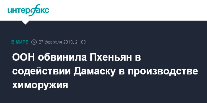 Москва. 27 февраля. INTERFAX.RU - Северная Корея поставляла в Сирию компоненты, которые могли быть использованы для производства химического оружия, говорится в докладе по итогам расследования ООН, который имеется в распоряжении газеты The New York Times.