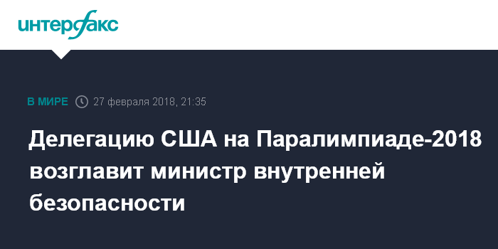 Делегацию США на Паралимпиаде-2018 возглавит министр внутренней безопасности