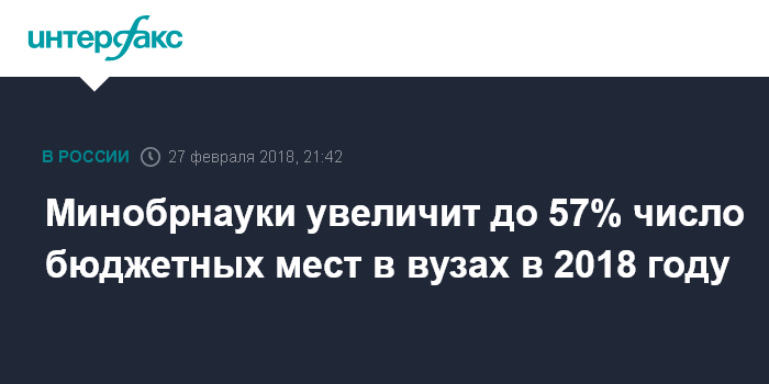 Минобрнауки увеличит до 57% число бюджетных мест в вузах в 2018 году
