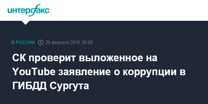 СК проверит выложенное на YouTube заявление о коррупции в ГИБДД Сургута