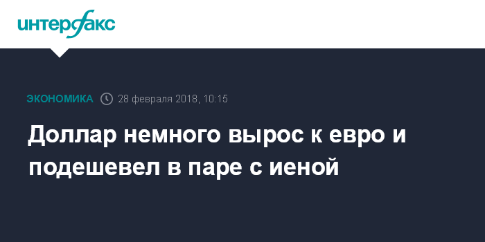 Москва. 28 февраля. INTERFAX.RU - Доллар в среду продолжает подъем к евро на заявлениях нового главы Федеральной резервной системы (ФРС) Джерома Пауэлла в Конгрессе, но стабилизировался по отношению к большинству остальных валют и снижается в паре с иеной.