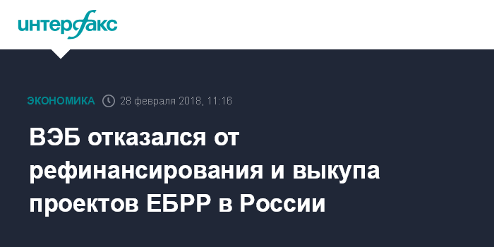 ВЭБ отказался от рефинансирования и выкупа проектов ЕБРР в России