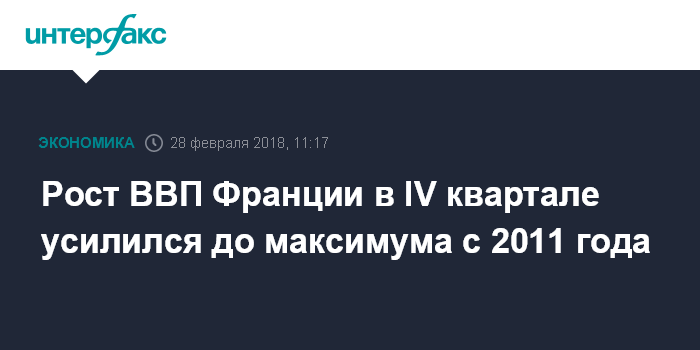 По итогам всего 2017 года французский ВВП увеличился на 1,9%, что стало лучшим повышением с 2011 года. Средний показатель роста в 2006-2016 годах составлял 0,8%.