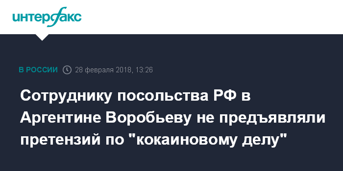 Сотруднику посольства РФ в Аргентине Воробьеву не предъявляли претензий по "кокаиновому делу"