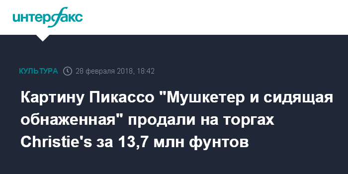 Картину Пикассо "Мушкетер и сидящая обнаженная" продали на торгах Christie's за 13,7 млн фунтов