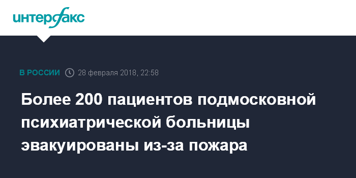 Москва. 28 февраля. INTERFAX.RU - Пострадавших в результате пожара, произошедшего в среду в психиатрической больнице в Ногинске, нет, сообщили в пресс-службе губернатора и правительства Московской области.