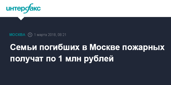 Ранее сообщалось, что в ночь на 28 февраля во время тушения пожара в квартире дома на бульваре Матроса Железняка в Москве погибли двое пожарных. Из огня были спасены четыре человека, в том числе трое детей. Мэр Москвы С.Собянин пообещал, что власти города окажут поддержку семьям двух погибших сотрудников МЧС.