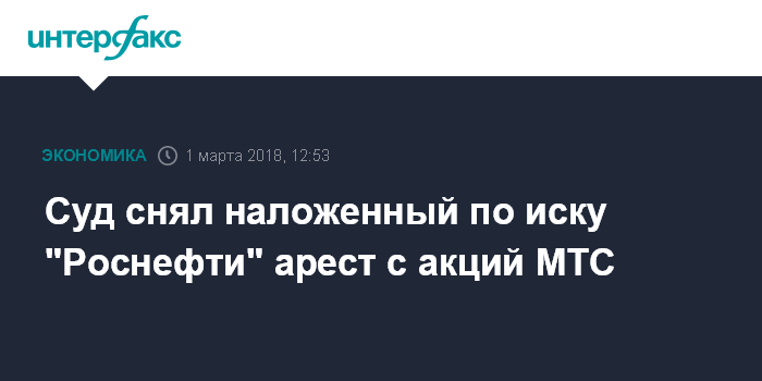 Суд снял наложенный по иску "Роснефти" арест с акций МТС