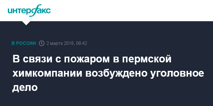 В связи с пожаром в пермской химкомпании возбуждено уголовное дело