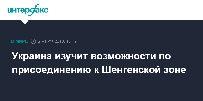 Москва. 2 марта. INTERFAX.RU - Вице-премьер Украины по вопросам европейской и евроатлантической интеграции Иванна Климпуш-Цинцадзе заявляет, что украинская сторона будет изучать возможности по присоединению к Шенгенской зоне в долгосрочной перспективе.