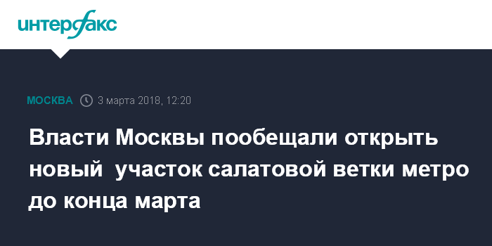 Власти Москвы пообещали открыть новый участок салатовой ветки метро до конца марта