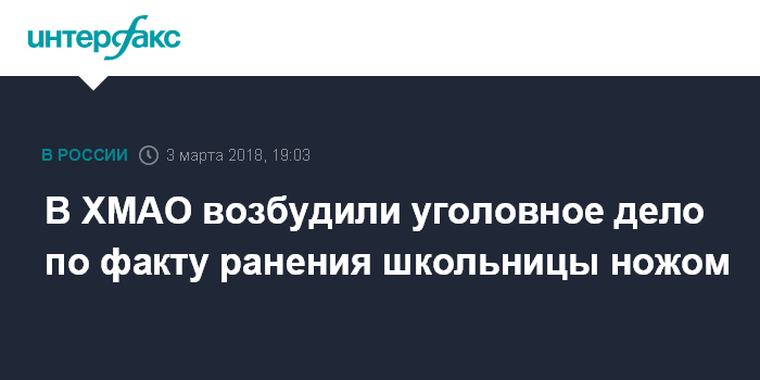 Москва. 3 марта. INTERFAX.RU - Следователи возбудили уголовное дело в связи с ножевым ранением школьницы в городе Советский в ХМАО, сообщается на сайте регионального следственного управления СКР.