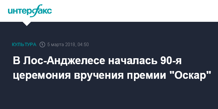 Юбилейная 90-я церемония вручения премии Американской академии кинематографических искусств и наук проходит в воскресенье вечером (по местному времени) в Лос-Анджелесе в театре Dolby Theatre.