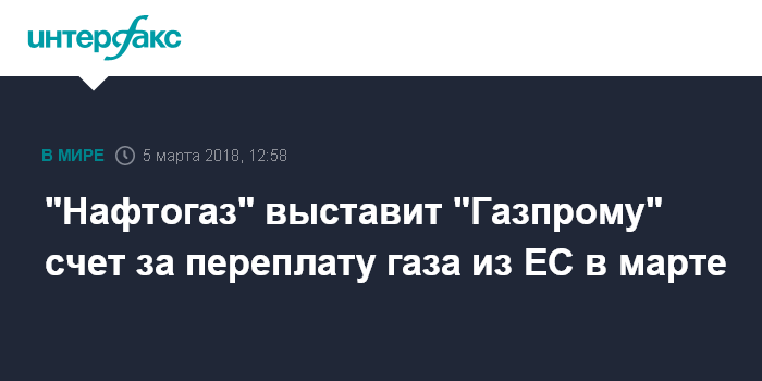 "Нафтогаз" выставит "Газпрому" счет за переплату газа из ЕС в марте