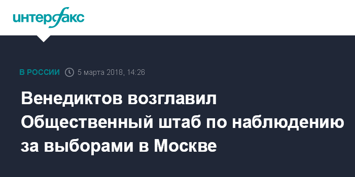 "Решение о создании Общественного штаба по наблюдению за выборами в Москве принято единогласно. Штаб возглавил член Общественной палаты города, главный редактор радиостанции "Эхо Москвы" Алексей Венедиктов", - сказал Шапошников.