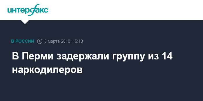 Москва. 5 марта. INTERFAX.RU - Сотрудники полиции в Пермском крае задержали 14 человек, подозреваемых в наркоторговле на территории региона, говорится в сообщении на сайте Главного управления МВД по региону.