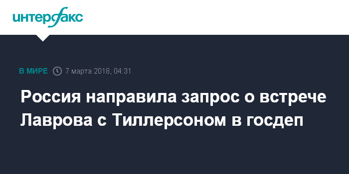 Россия направила запрос о встрече Лаврова с Тиллерсоном в госдеп