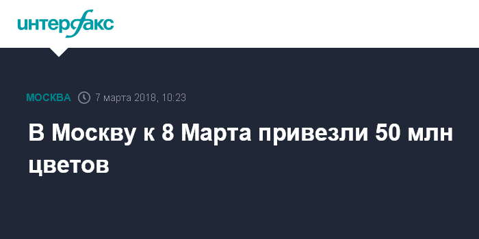 Москва. 7 марта. INTERFAX.RU - Предприниматели завезли в Москву к 8 Марта 50 млн цветов, сообщил мэр столицы Сергей Собянин в своем твиттере в среду.
