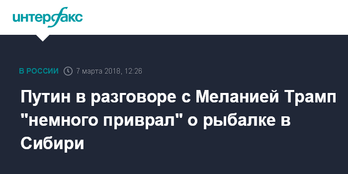 Путин в разговоре с Меланией Трамп "немного приврал" о рыбалке в Сибири