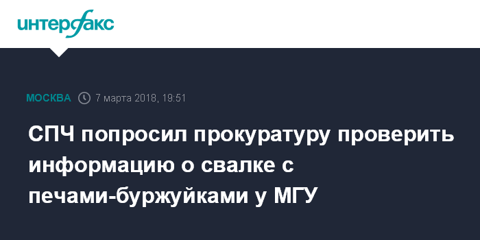 Москва. 7 марта. INTERFAX.RU - Совет по правам человека при президенте РФ обратился в столичную прокуратуру с просьбой организовать проверку информации о неприятном запахе от свалки в окрестностях МГУ им.Ломоносова.