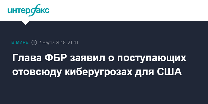 Москва. 7 марта. INTERFAX.RU - Директор ФБР Кристофер Рэй заявил, что киберугрозы для США приходят отовсюду, передают в среду местные СМИ.