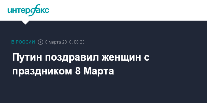 Москва. 8 марта. INTERFAX.RU - Президент России Владимир Путин поздравил женщин с 8 Марта и прочитал отрывок из стихотворения поэта Андрея Дементьева.
