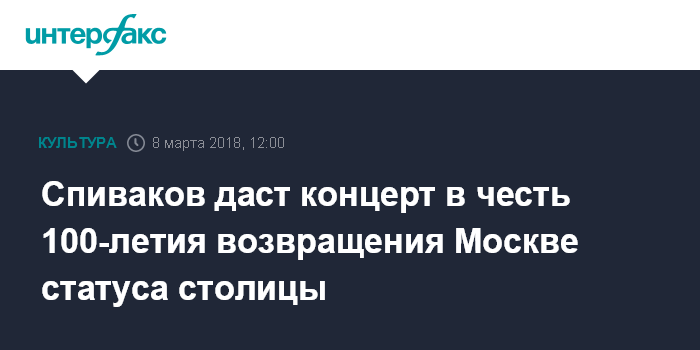 Спиваков даст концерт в честь 100-летия возвращения Москве статуса столицы