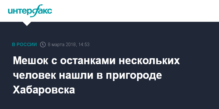 Москва. 8 марта. INTERFAX.RU - На одном из участков протоки Бешенная вблизи Хабаровска обнаружен мешок с 26 парами человеческих конечностей, сообщил "Интерфаксу" информированный источник.