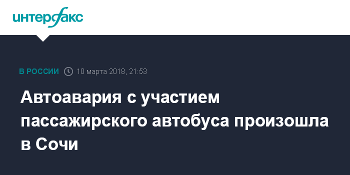 Москва. 10 марта. INTERFAX.RU - Дорожно-транспортное происшествие (ДТП) с участием пассажирского автобуса и автомобиля Lexus, произошло в поселке Красная Поляна, Сочи, сообщили агентству "Интерфакс" в пресс-службе Главного управления МВД России по Краснодарскому краю в субботу.