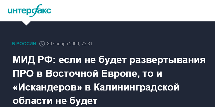 МИД РФ: если не будет развертывания ПРО в Восточной Европе, то и «Искандеров» в Калининградской области не будет
