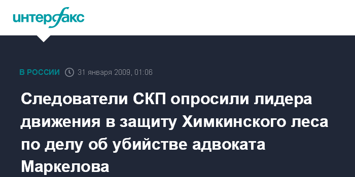 Следователи СКП опросили лидера движения в защиту Химкинского леса по делу об убийстве адвоката Маркелова